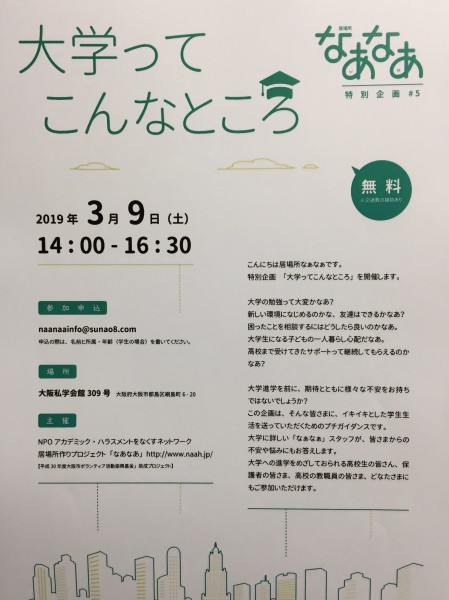 ジェクト「なぁなぁ」特別企画♯5「大学ってこんなところ」のご案内です。