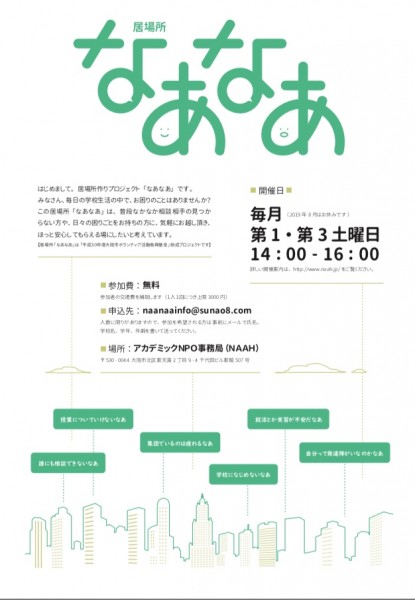 詳細は、twitter @naanaainfo 若者居場所づくりプロジェクト「なぁなぁ」にてご確認いただけます。