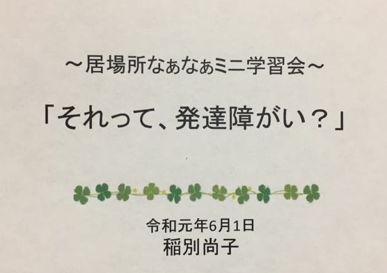 私が活動させて頂いている居場所なぁなぁにて、ミニ学習会「それって、発達障がい?」を
