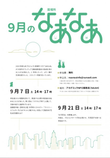 9月の居場所「なぁなぁ」のチラシができました!!